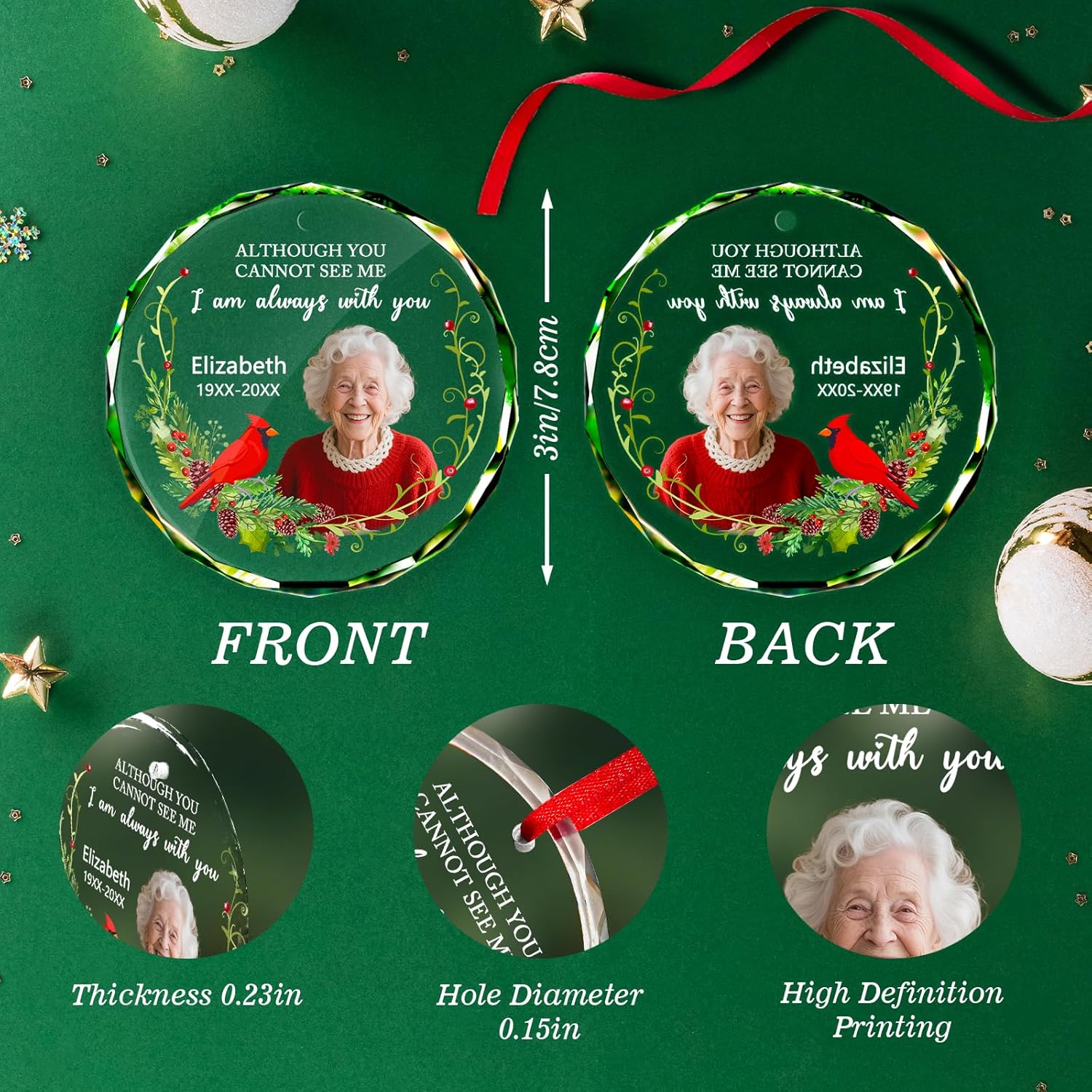 - Heartfelt Memorial Ornament: Display your loved one's image, name, and life years on a crystal-clear glass ornament – a beautiful way to cherish their memory