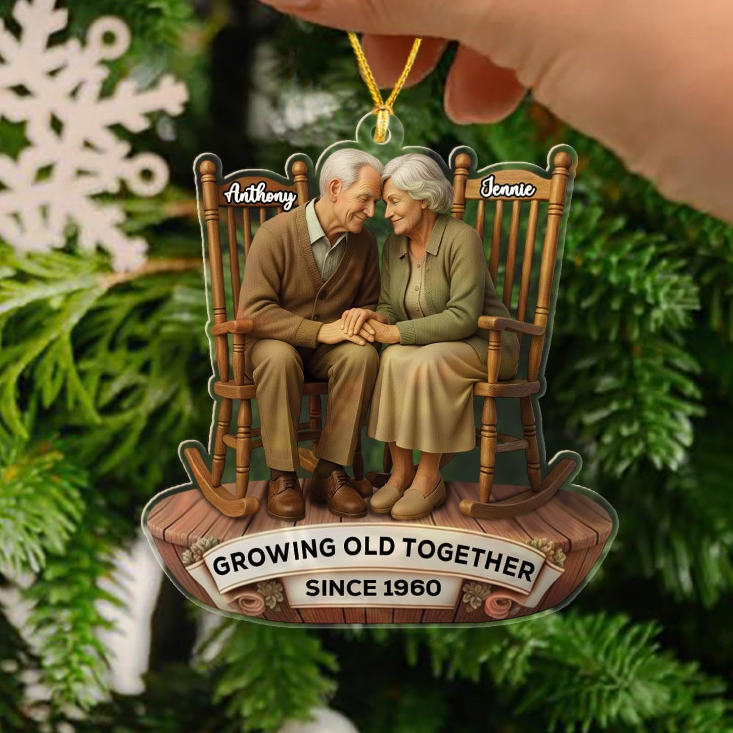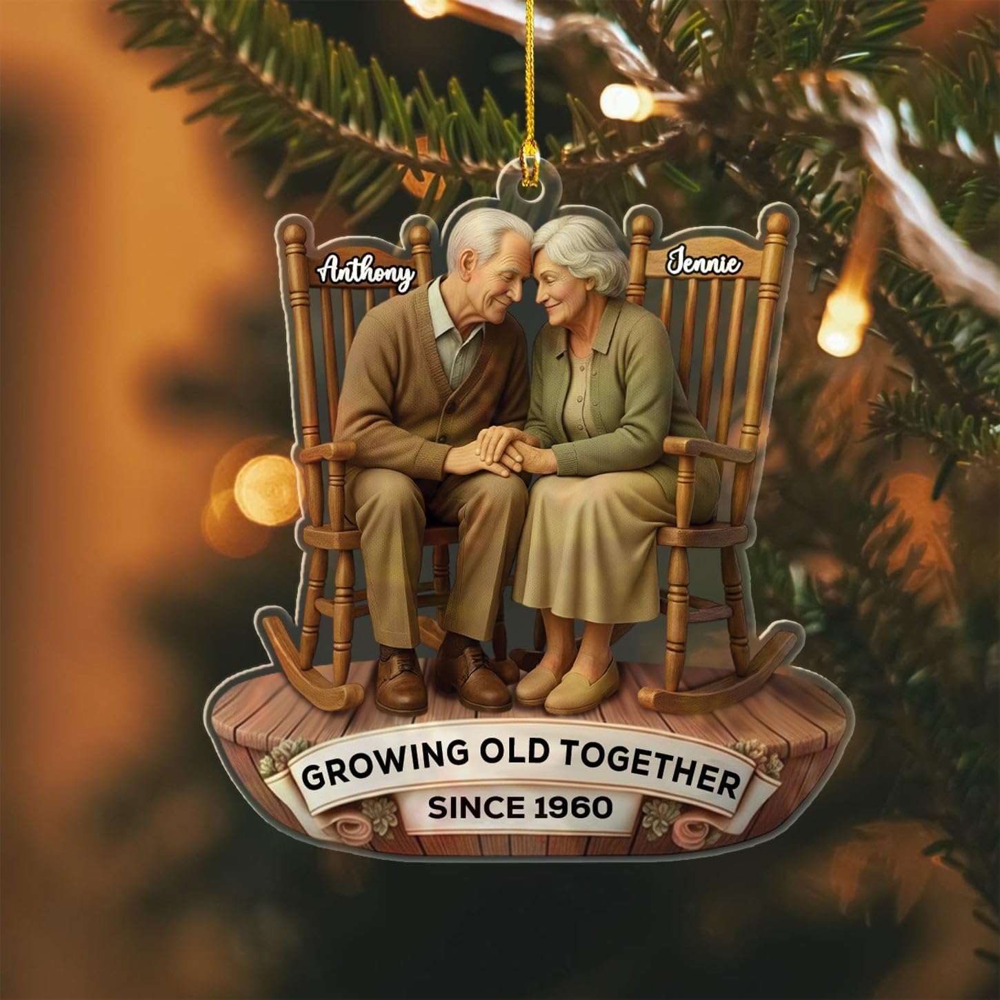 - PERSONALIZED CHRISTMAS ORNAMENTS: This "Old Couple Sitting On Rocking Chairs Growing Old Together Since" custom ornament is specially designed for an Old Couple, Husband and Wife, Boyfriend and Girlfriend, Him and Her, Bride and Groom, Mr & Mrs, Newlyweds, Dad Mom, Parents, Grandparents. Click on the " Customize Now " button to make your ornament special by customizing it to your liking.