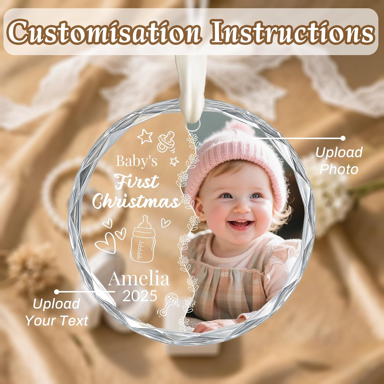 - Excellent After-sales Service: If you have any questions about personalized photo ornament, please feel free to contact us. We will give you a satisfactory reply within 24 hours. We specialize in creating personalized baby's first christmas ornament that are not only visually appealing but also worthy of lifelong cherishing