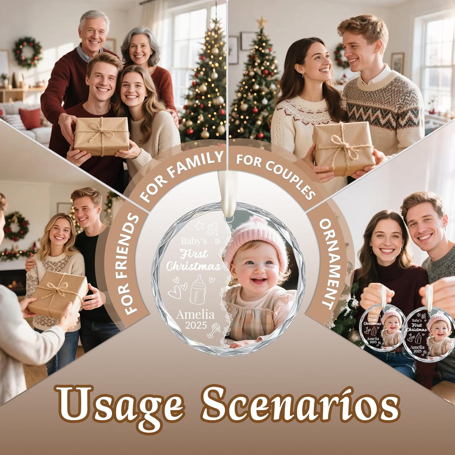 - Multi-scenario Applications: This personalized first christmas ornament 2025 features a crystalline, translucent finish that effortlessly elevates the festive atmosphere. Hang it on your Christmas tree, window, or inside your car to capture the light and create dazzling reflections, instantly crafting a warm and romantic Christmas ambiance
